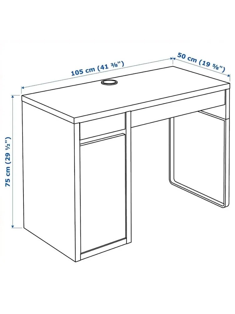 Компактные размеры — ширина 105 см, глубина 50 см, высота 75 см — делают стол МИККА подходящим для небольших комнат, при этом рабочей поверхности достаточно для размещения ноутбука, монитора, документов и аксессуаров.