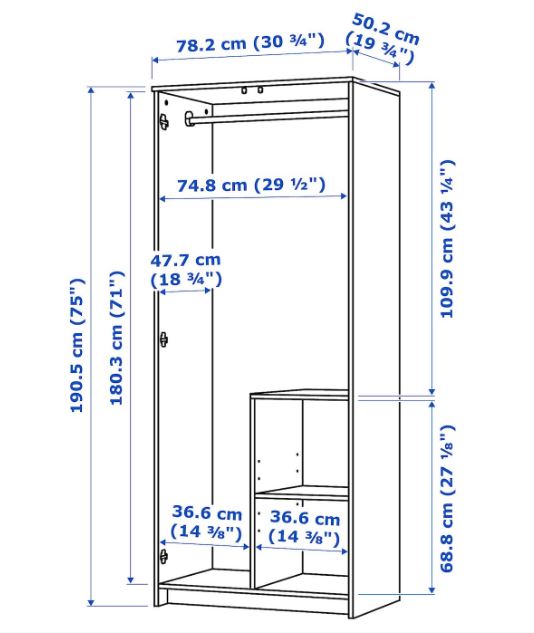 1 платяная штанга, 1 съемная и 1 несъемная полки прилагаются.