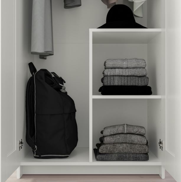 На одну полку можно положить около 10 пар сложенных брюк или 20 футболок.