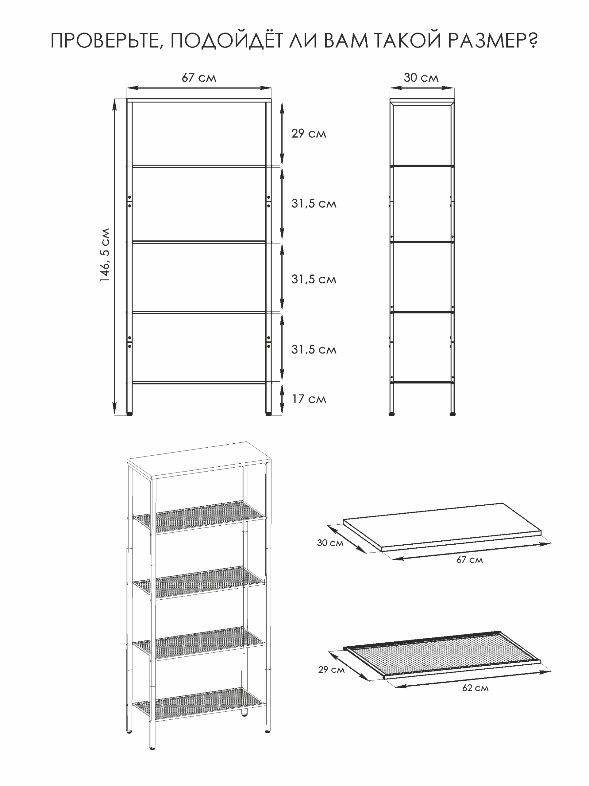 Сетчатые и ЛДСП полочки выдержат нагрузку до 8 кг.