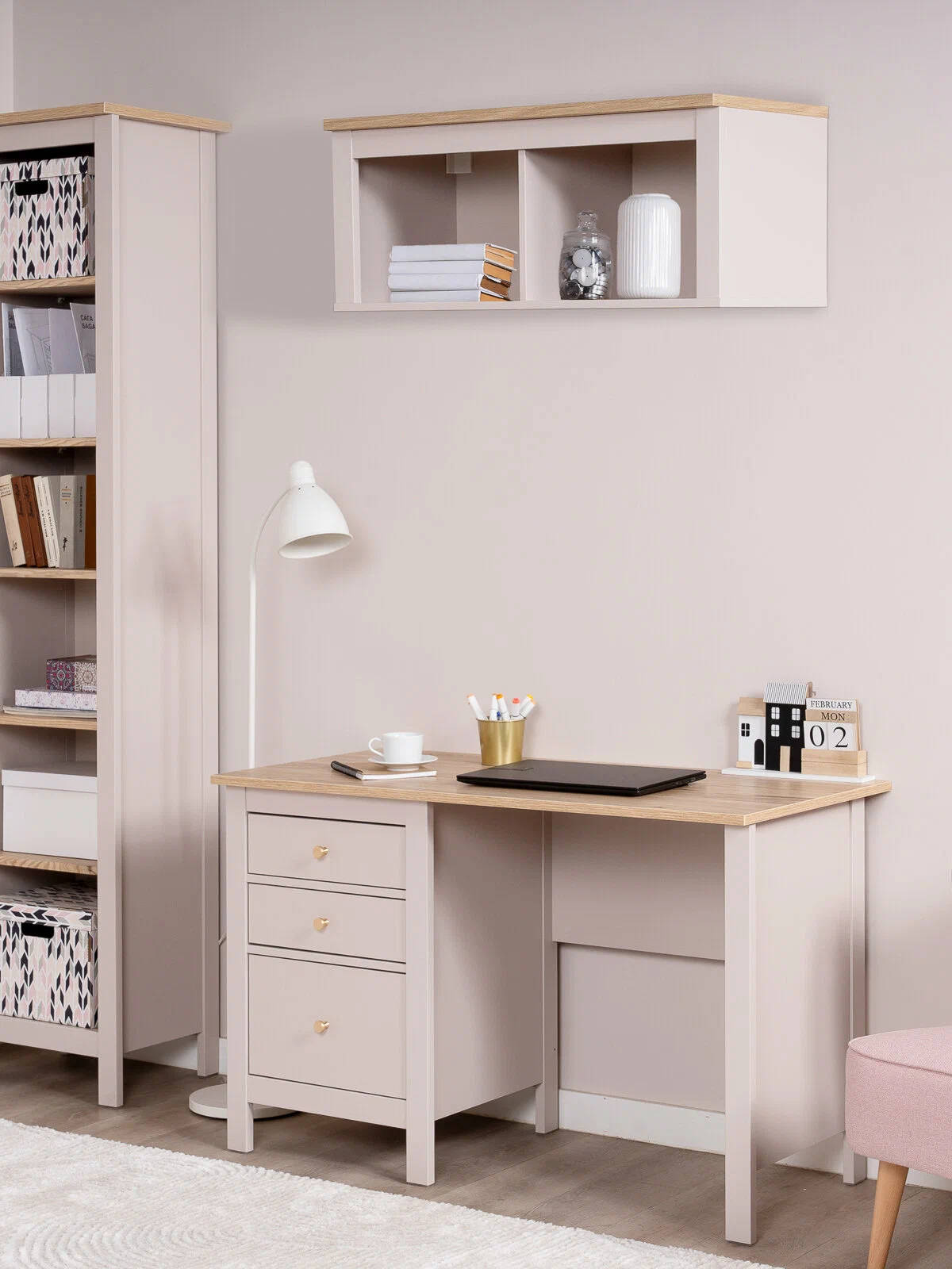Основание выполнено из прочного МДФ, а столешница — из износостойкого ЛДСП, что обеспечивает долговечность и устойчивость к ежедневным нагрузкам. Универсальное расположение тумбы и угла позволяет адаптировать стол под планировку комнаты, делая его максимально удобным для пользователя.