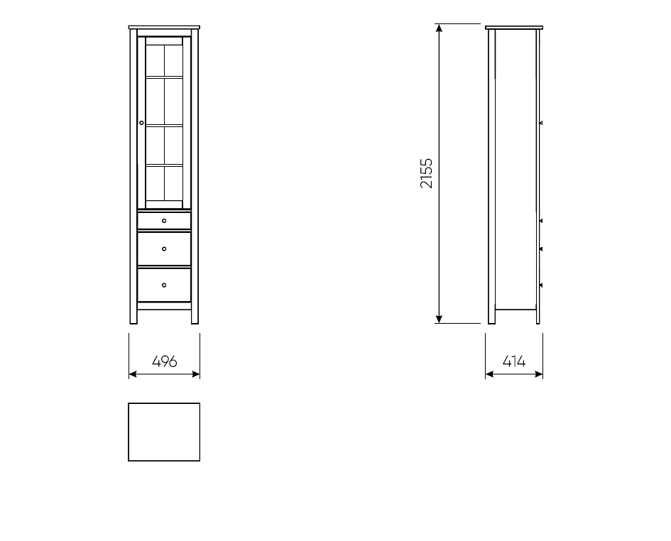 Благодаря компактным габаритам (ширина 496 мм, глубина 414 мм) шкаф не занимает много места и подходит для установки в гостиной, столовой, кабинете или спальне. Высота 2155 мм позволяет эффективно использовать пространство по вертикали.