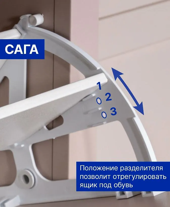 Модель можно комбинировать с другими модулями серии мебели САГА, создавая единый интерьер прихожей.