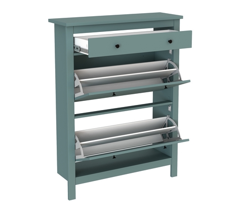 Глубокий тёмно-бирюзовый цвет придаёт мебели выразительный и современный внешний вид и может стать стильным акцентом интерьера. Компактные размеры позволяют разместить обувницу даже в небольшой прихожей, сохраняя удобство и порядок.