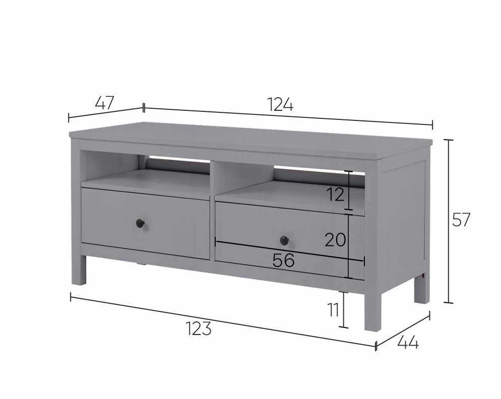 Лузалес-Тихвин ТВ-тумба Кымор 124х57х47 (серый) в скандинавском стиле — это стильное и функциональное дополнение к любому интерьеру.