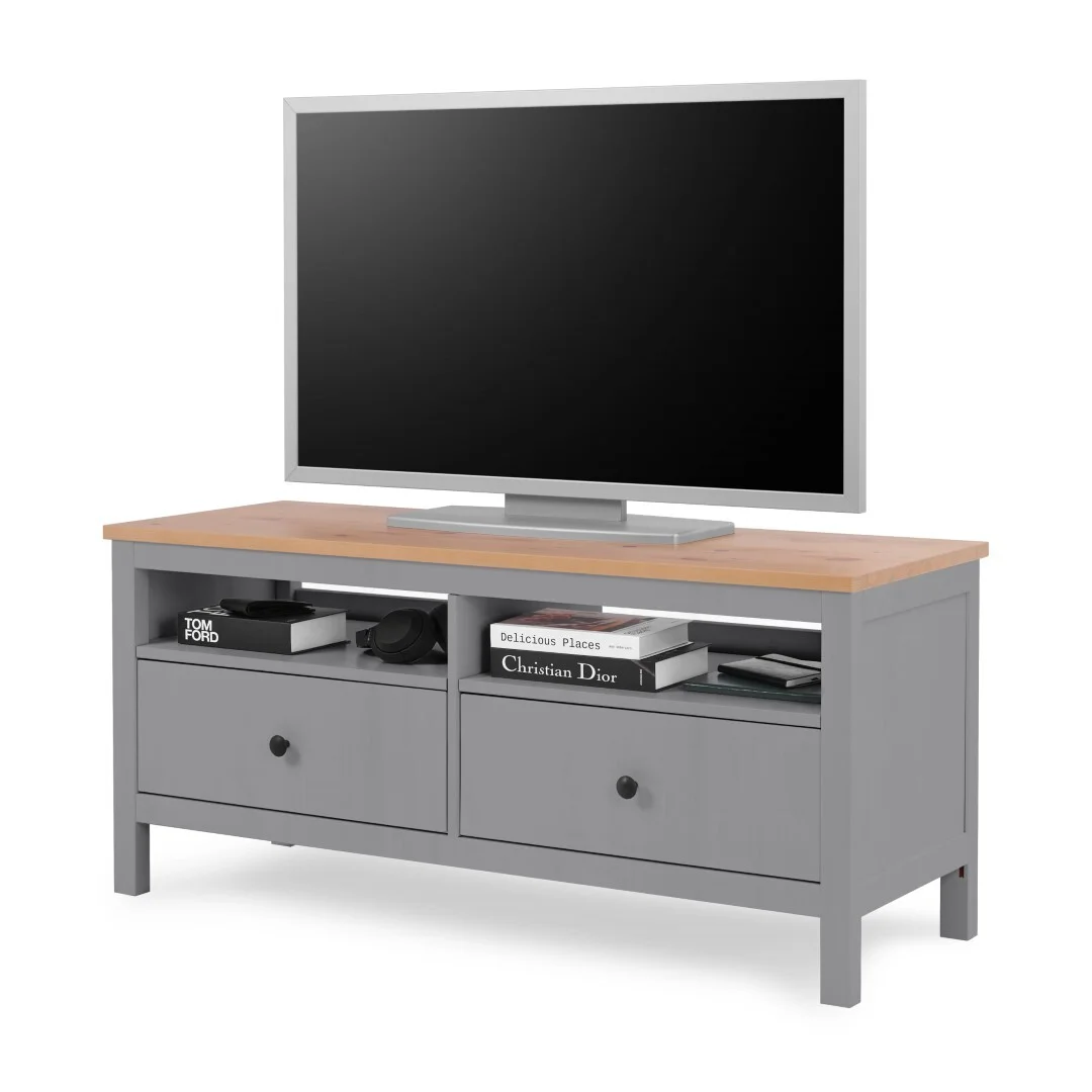 Лузалес- Тихвин ТВ-тумба Кымор 124х57х47 (серый, светло-коричневый) в скандинавском стиле — это стильное и функциональное дополнение к любому интерьеру. Она выполнена из массива сосны, который известен своей прочностью, долговечностью и экологичностью. Покрытие тумбы выполнено с использованием красителей на водной основе и лака на основе акриловых смол с УФ-отверждением, что гарантирует устойчивость к внешним воздействиям. Два вместительных ящика на роликовых направляющих обеспечивают удобное хранение личных вещей и мультимедийных устройств. Неокрашенная внутренняя часть ящиков подчеркивает естественную красоту дерева. Тумба позволяет разместить не только телевизор, но и разнообразные аксессуары или комнатные растения. Можно компоновать с другими модулями из серии мебели Кымор. Реальный цвет товара может отличаться от цвета товара на фотографии. Поставляется в разобранном виде. Инструкция в комплекте.